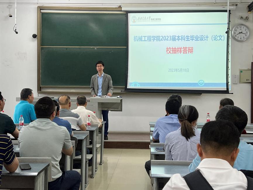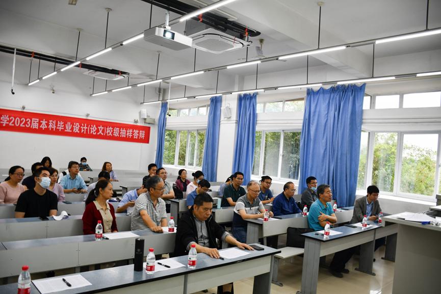 2023年5月18日上午,BBV体育_BBV(中国)2023届本科生毕业设计(论文)校抽样答辩在犀浦校区七号教学楼顺利举行。学院党委书记袁艳平,副院长田怀文,质保委主任程文明,质保委副主任杨美传,各系所主任、专业负责人及答辩学生指导教师参加了本次答辩。