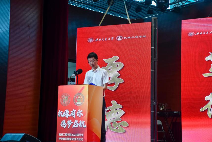 在钱林茂院长的祝福词中,向同学们提出了三个关键词——怀揣理想、踏实工作和团队工作,并希望同学们从这三方面出发,提升自己,超越自我,成为一名优秀的交大人。最后,钱院长提出了自己对同学们的期望“永葆青春朝气,在顺境时顺势而为,在逆境时破茧而出,将百年机械厚德笃行、精勤致远的精神发扬光大。”钱院长的祝福饱含了学校与学院对同学们殷切期盼,是学校和学院育人精神的充分体现。