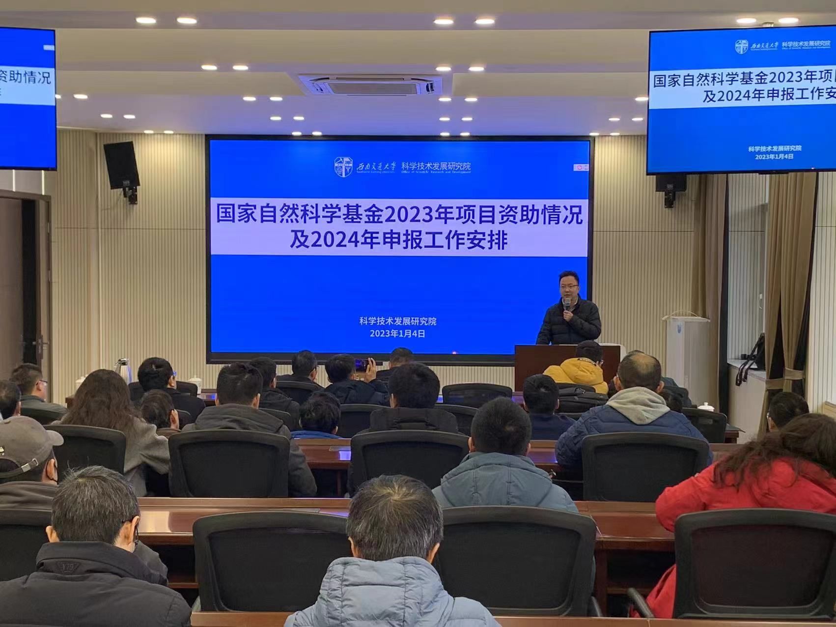 科研院马霖副院长介绍了2023年国家自然科学基金委的整体申报及资助情况,也总结了2023年学校自然基金项目申报及资助情况,特别强调了自然基金项目对于青年教师成长的重要性,介绍了学校在基金工作方面的一些培育政策等,希望大家积极参与。