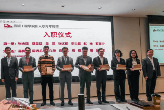 在新进教职工入职仪式中,袁艳平书记、钱林茂院长代表学院对2023年新入职的14位老师表示了欢迎,并为每位新入职老师准备了一份纪念品、一套校史书籍、一套校徽院徽。学院的发展需要全体教工凝心聚力共同奋斗,希望新入职的老师们传承百年机械精神、接过前辈们的接力棒,积极承担新时代老师的使命与担当,落实立德树人根本任务,努力提高自身能力水平,为学院的高质量发展贡献力量。