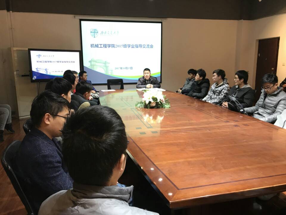 12月19日下午17:30,机械学院2015级各班学习委员和部分学生代表在犀浦校区X2201会议室召开了本学期考前学业指导交流会,辅导员李君、田颍和杨怀银老师参加交流并做了动员。