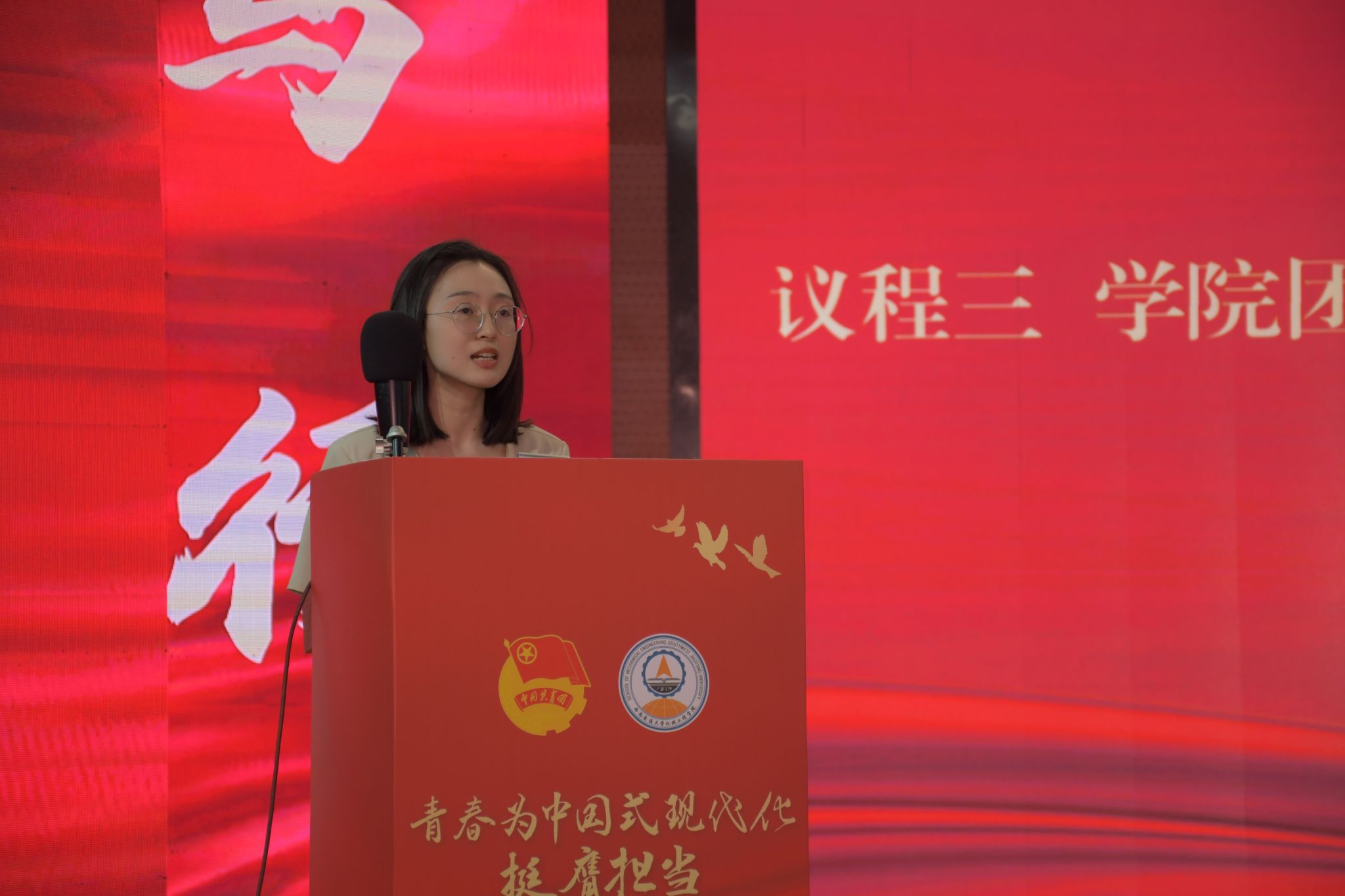 郑源代表学校共青团对大会的召开表示祝贺,对BBV体育_BBV(中国)在思想引领、学术创新、社会实践、志愿服务等方面的工作成效表示肯定。她指出,在过去一年里,BBV体育_BBV(中国)团委紧紧围绕中心、服务大局,扎实开展共青团工作,始终做到密切联系青年、服务青年、引领青年,荣获“西南交通大学五四红旗团委”荣誉称号。她就接下来如何做好共青团工作提出了三点希望:一是希望同学们知行合一,在砥砺奋进中锤炼报国初心;二是希望老师们德才并育,在躬耕实践中扛起树人使命;三是学院团委凝心聚力,在服务大局中彰显青春作为。