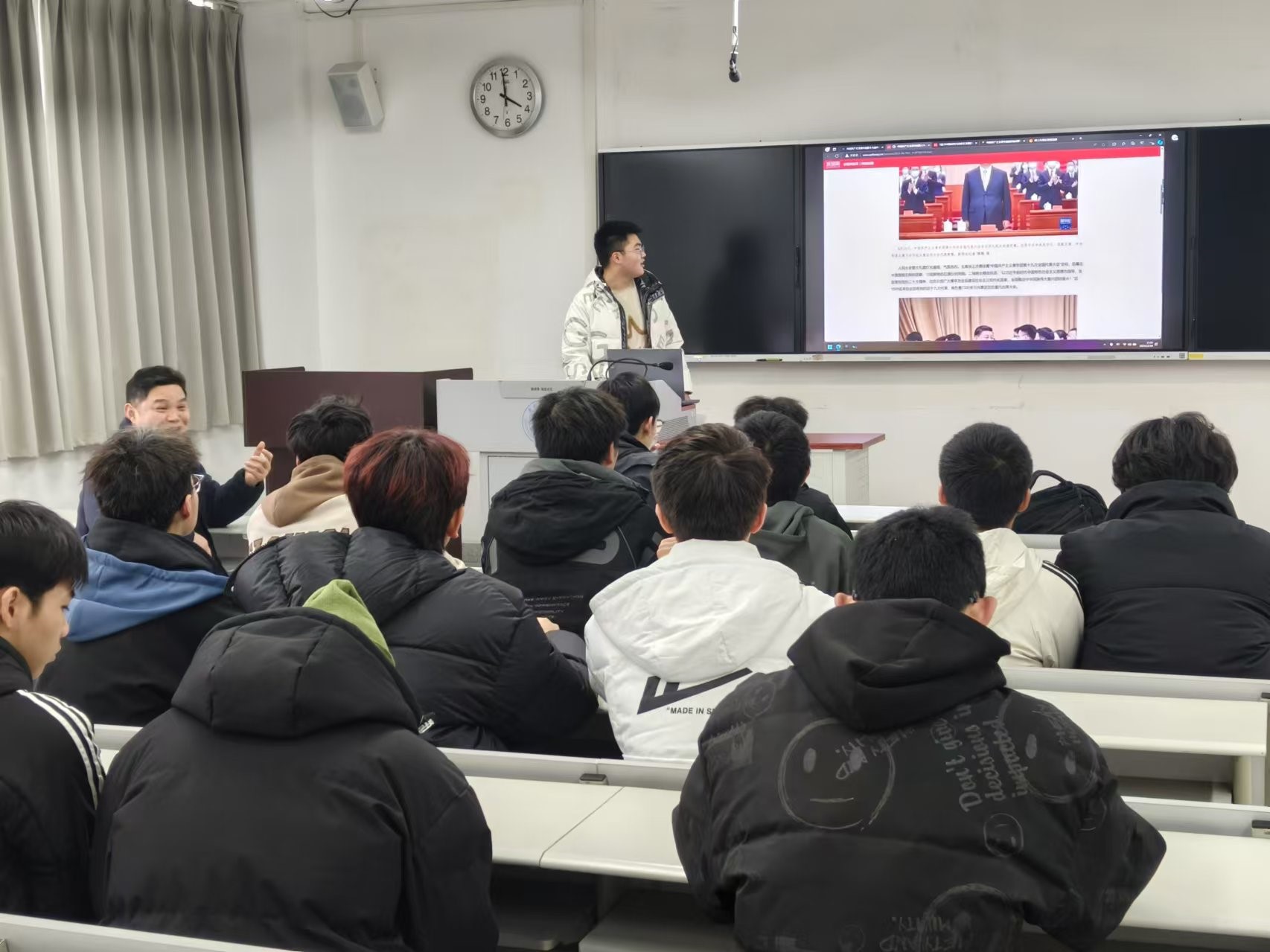 工作亮点:班导师工作注重分层指导与全程陪伴:针对大一新生(车辆2024级3班)开展新生入学角色转变、专业认知、培养方案解读等前置化启蒙介绍;面向高年级(车辆2022级1班)聚焦学业提升与升学(免研/考研)辅导介绍;同时坚持下沉式关怀(定期班会、寝室走访、随堂听课)与个性化指导,并积极联合朋辈导师协同育人,进行线上(班级微信群及个人微信)线下结合、贯穿学业关键节点的精细化指导。