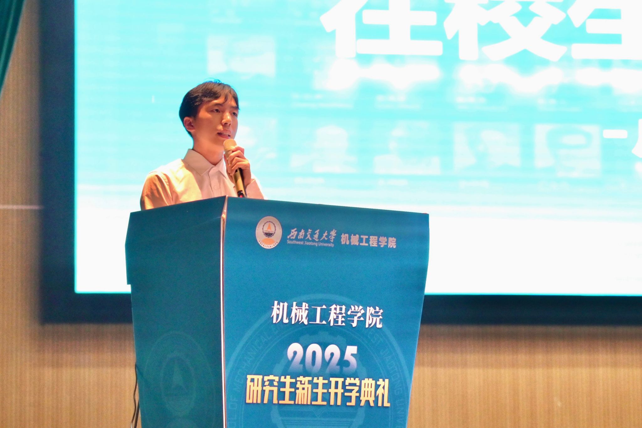 学院优秀研究生在校生卢旭磊、本科在校生王华涛代表高年级学生和新生们做了分享。卢旭磊向新生表欢迎,分享了 “立心、立身、立行” 三点读研心得,寄语新生逐梦,同时致谢师长并祝愿新生学有所成、研有所获。王华涛生动讲述了自己一路以来的成长心得与体会,并与同学们分享了三点感悟:第一,同学们选择的是一片学风浓厚、育人有方的沃土;第二,同学们拥有的是一个实践淬炼、合作共赢的舞台;第三,同学们传承的是一份薪火相传、砥砺奋进的力量
