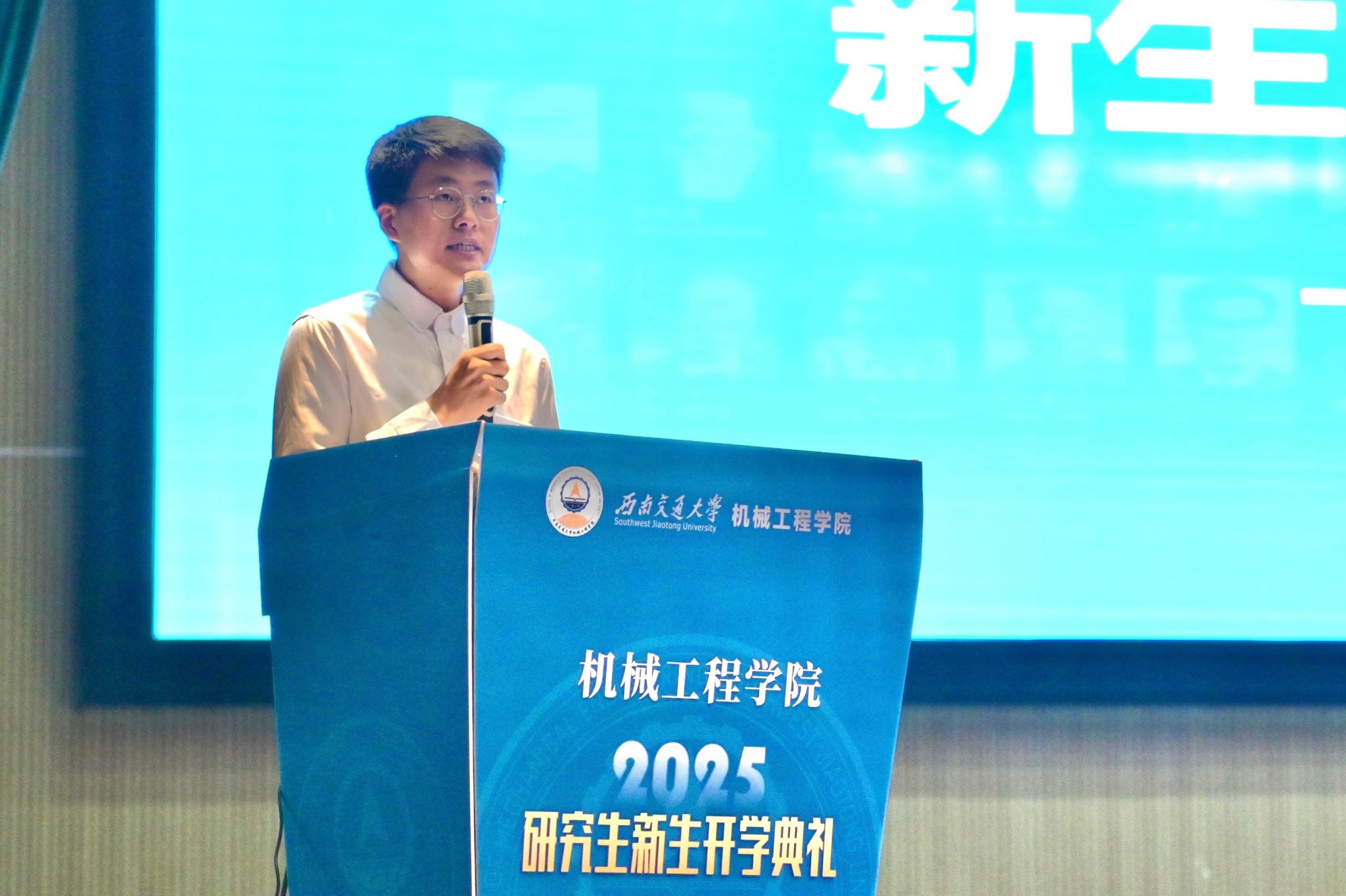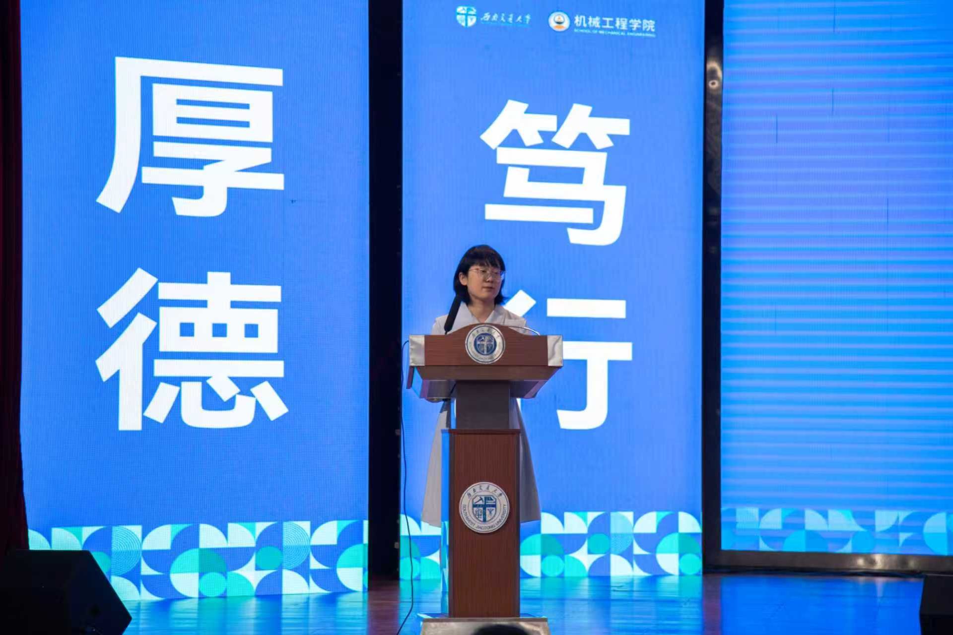 学院导师代表郭亮和青年教师张志瑶分别进行了发言。郭亮老师希望同学们将个人科研梦想与国家战略和产业需求紧密结合,在机械工程前沿领域找准研究方向,珍惜在机械学院的时光,成长为有理想、有本领、有担当的卓越工程人才,用科研实践为行业发展与社会进步贡献力量。张志瑶老师结合自己在交大的求学经历和科研之路,向同学们提出了三点体会:一是大学之大,在于无限可能,请勇敢探索;二是比积累知识更重要的,是培养独立思考的能力;三是请善待成长中的烦恼,给自己更多勇气。她希望同学们在交大的岁月里,勇敢尝试,学会思考,坦然面对成长中的烦恼,努力成为更好的自己。