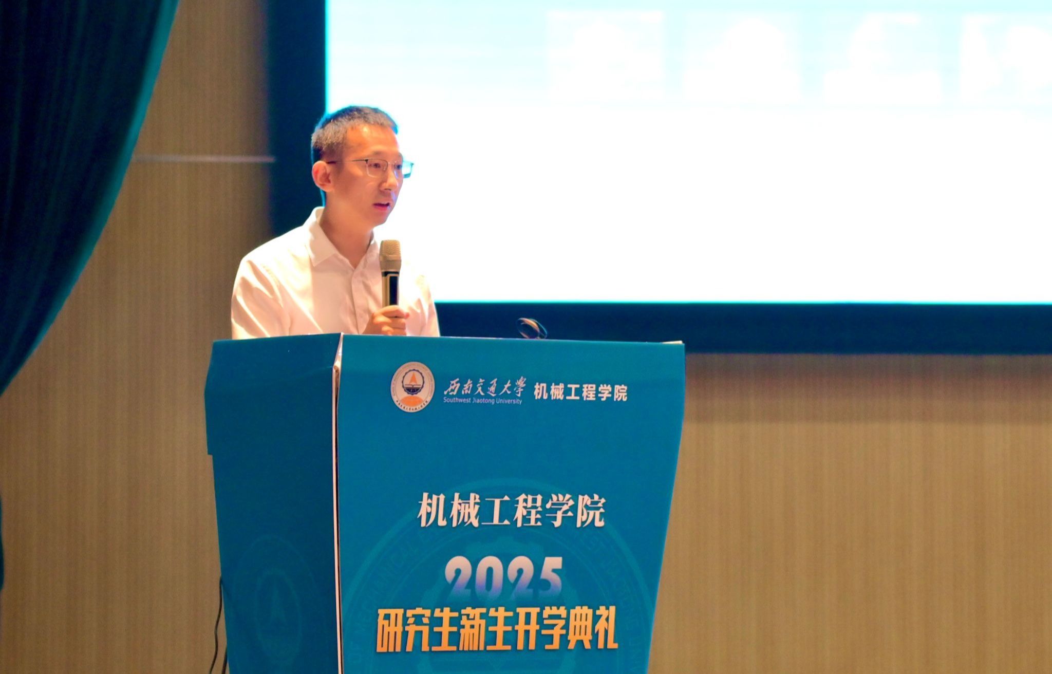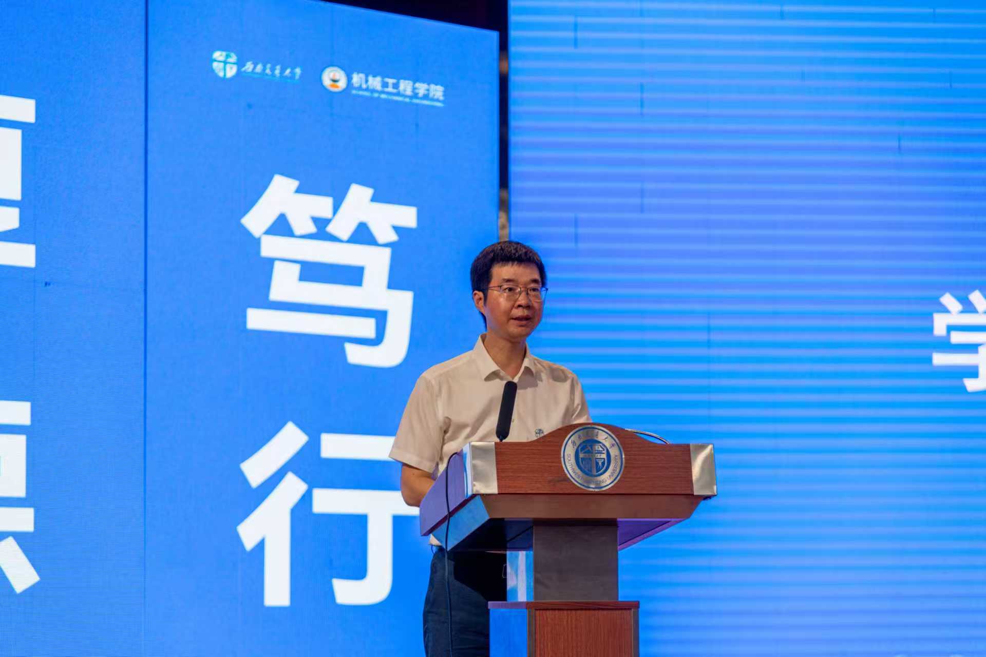 在第二阶段,钱林茂院长分别以“创新与诚信”、“百年机械 创新强国”为题,为2025级研究生和本科生带来了精彩的入学第一课。他指出,“真实是学术的根基,诚信是科研的生命”,学术诚信是每一位研究生必须坚守的首要准则。他激励同学们自觉强化学术自律,不断提升诚信修养,以纯粹之心做真实之学。他围绕学院历史发展轨迹、专业系所、师资队伍、党建引领、本科专业、学位授予、重点教学科研创新平台、教师团队、教学成果、学科现状、科研规模、期刊阵地、学生培养等多个方面向同学们详细介绍了学院的基本情况。他指出,BBV体育_BBV(中国)是西南交通大学历史最为悠久的学院之一,其前身为唐山路矿学堂机械科,始建于1919年。百年来,通过一代又一代机械人的不懈奋斗,学院以显著的成就、雄厚的实力,在国内产生了较大的影响力。他通过分享自己的学习与工作简历,勉励大家将个人理想与国家发展命运相结合,树立科技报国的远大志向,将学习目标与解决国家在高端制造领域面临的“卡脖子”技术难题相联系。他强调,作为探索未知、破解难题的先锋,科研人员必须始终保持创新意识,主动跳出传统思维局限,勇于质疑、敢于突破,以新视角、新方法持续攀登科学高峰,鼓励同学们努力成为新时代复合型拔尖创新人才。