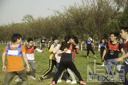 在开班仪式后,依次进行了“请你记住我”、“喊数抱团”、“急速60秒”、“翻牌游戏”、“撕名牌”等多个训练项目。这些精心设计的系列活动,使同学们在欢笑中体会到团队合作的道理和技巧,明白了交流沟通的重要性。同学们也通过在团队中扮演的角色,理解到领导与协作的意义。“请你记住我”让同学们破冰,更加认识了解彼此;“喊数抱团”使大家懂得了团队的重要性,树立了互相支持、相互配合的精神;而最后的“终极一战——撕名牌”更使欢乐的气氛达到了顶点。本次活动也在奔跑和笑声圆满结束。