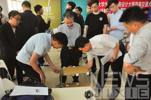 4月20日,第八届机械创新设计大赛西南交通大学校内选拔赛决赛精彩开赛。此次竞赛答辩在三食堂三楼大学生创新创业教育中心c304,c305,c306三处进行,分别邀请了资产与实验室管理处副处长董艳云、BBV体育_BBV(中国)党委副书记李毅、王培俊教授、谢进教授、田怀文教授、陈天星副教授、邓斌教授、周斌教授、王少华教授、于兰峰教授、杨美传副教授、王国志副教授、罗大兵副教授、潘亚嘉副教授等22位老师担任本次大赛答辩的评委。