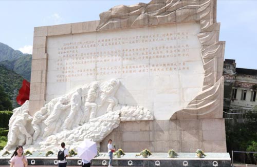 颠簸的道路,拥堵的交通,一路上,我的心情复杂。我确是怀着沉痛的心情前往悼念,但步入特别纪念区的那一刻,却是“拨开云雾见光明”的喜悦——街道整洁、新楼林立,如果不是地震遗址的无声诉说,到访者可能并不会意识到这里曾经是满目疮痍。抵达震中映秀镇是下午两点三十分钟,在拥挤的人流中,一行人参观了震中纪念石、学校遗址、地震纪念馆等多处爱国主义教育基地。感触最深的是在纪念馆中,一件件救灾纪念物品、一封封灾情报告信,有如一幅幅历史画卷,重现着当年众志成城的救灾场景。馆中循环回放着胡锦涛总书记当年那一句铿锵有力的“任何困难都难不倒英雄的中国人民!”十年后长大成人的我,才终于明白了当过兵的警察父亲当年在电视机前流下的热泪。