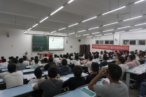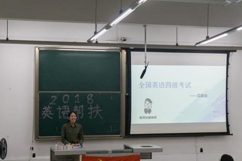 开课典礼结束后,本次帮扶活动的第一课正式开始。老师以风趣幽默的讲课风格向同学们讲解了大学英语四级的考试题型和考试技巧。而现场的一百二十多名同学也都满怀热情地认真听讲。