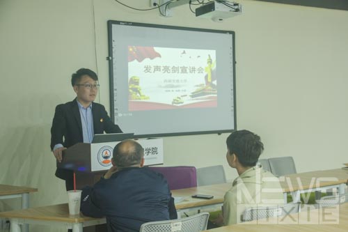 10月11日晚19:05,BBV体育_BBV(中国)新疆籍少数民族学生,参加了“发声亮剑”宣讲会。本次宣讲会由2018级BBV体育_BBV(中国)本科生辅导员黄兆国老师主持进行,学生工作部的艾赛提江老师和江晓军老师也莅临本次宣讲会。本次活动旨在加强对少数民族同学“反极端,正思想”方面的教育。