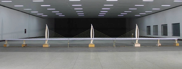 港珠澳大桥共有3个跨度通航孔桥和长距离的钢箱梁非通航孔桥,这些桥体如何能经受住猛烈的台风呢?土木学院廖海黎、李明水教授团队承担了港珠澳大桥所有通航孔桥和钢箱梁非通航孔桥的抗风性能研究工作。有关大桥模型在西南交大犀浦校区的XNJD-3风洞这一目前世界最大的边界层风洞里进行了反复试验,最终,团队为港珠澳大桥的抗风设计和风致振动抑制措施提供了科学依据。