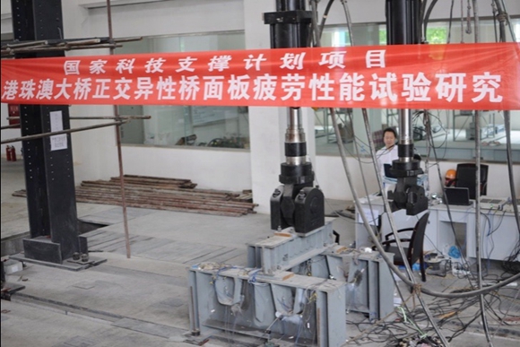 港珠澳大桥采用正交异型桥面板钢箱梁,这种结构形式轻质高强、施工速度快,但是它的板件构件及受力特性复杂,最大的问题是疲劳。疲劳导致的裂缝成为国内外钢桥行业共同的难题。我校土木工程学院卜一之、张清华教授参与国家科技支撑计划项目—港珠澳大桥跨海集群工程建设关键技术研究与示范,课题三:科技支撑计划课题—海上装配化桥梁建设关键技术(课题编号:2011BAG07B03),主持子课题二:连续钢箱梁正交异性钢桥面板抗疲劳性能关键技术。主持中交公路规划设计院有限公司委托科研课题两项——港珠澳大桥主体工程桥梁工程施工图设计钢箱连续梁合理构造系统和设计标准专题研究、港珠澳大桥主体工程桥梁工程施工图设计钢箱连续梁制造及安装关键技术专题研究。通过艰苦研究,团队攻克了疲劳的难题,助力港珠澳大桥保证120年的寿命,并为大桥钢梁架设技术提出了有益建议。