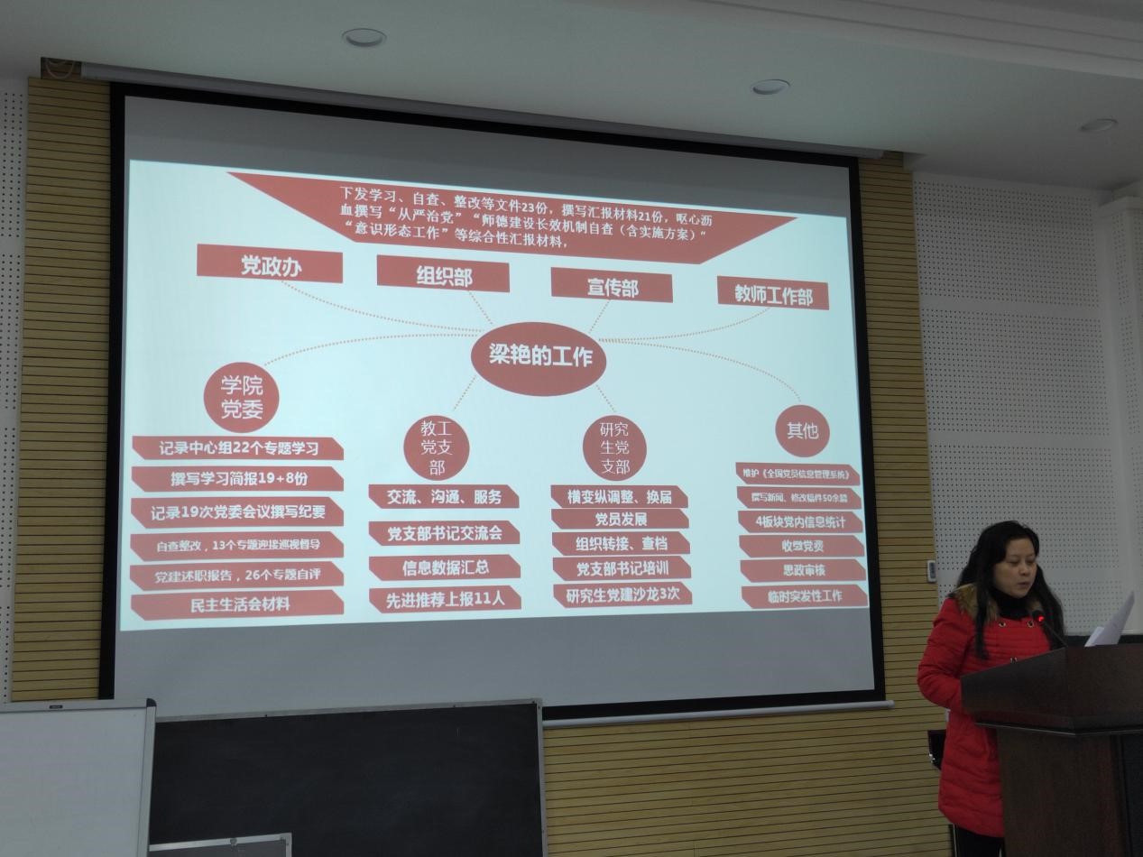 今年学院第一次举行交叉考核,每一位老师们事先都认真地进行了准备,精心制作PPT,认真详实地总结汇报自己2018年度和2016-2018聘期内的完成的教学、科研和管理等工作情况。这样的考核方式不仅有利于老师们对自己的工作进行认真总结和思考,也增进了不同专业和系所教职工相互认识、了解、学习和交流,特别对青年老师提供了一个充分学习和借鉴机会和平台,有利于青年教师成长。