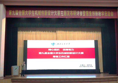2019年3月30日,第九届全国大学生机械创新设计大赛主题发布研讨会暨慧鱼创新教学交流会在杭州电子科技大学举行,我院教师田怀文教授、张则强教授、杨宁学和杨怀银老师在田院长的带队下参会学习;副院长田怀文教授在大会上详细汇报了承办大赛筹备情况,并引起了与会代表的关注,反响热烈。