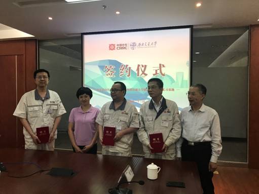 最后,副院长田怀文与副总经理黄核仁共同签署了关于建设实习基地的相关协议,参访队伍全体师生,中车眉山公司部分工程师、专家、校友列席会议。