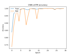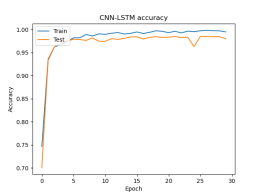 由上表可以看出,本文提出的CNN-LSTM模型比CNN模型和LSTM模型在凯斯西储大学数据集各类工况下滚动轴承故障诊断的精度都高,同时每个训练周期所耗时间最短,效率最高。下面将CNN-LSTM模型可视化: