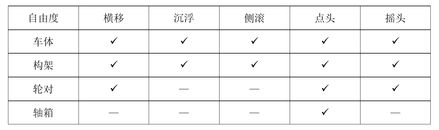 表 2 车辆各实体自由度表