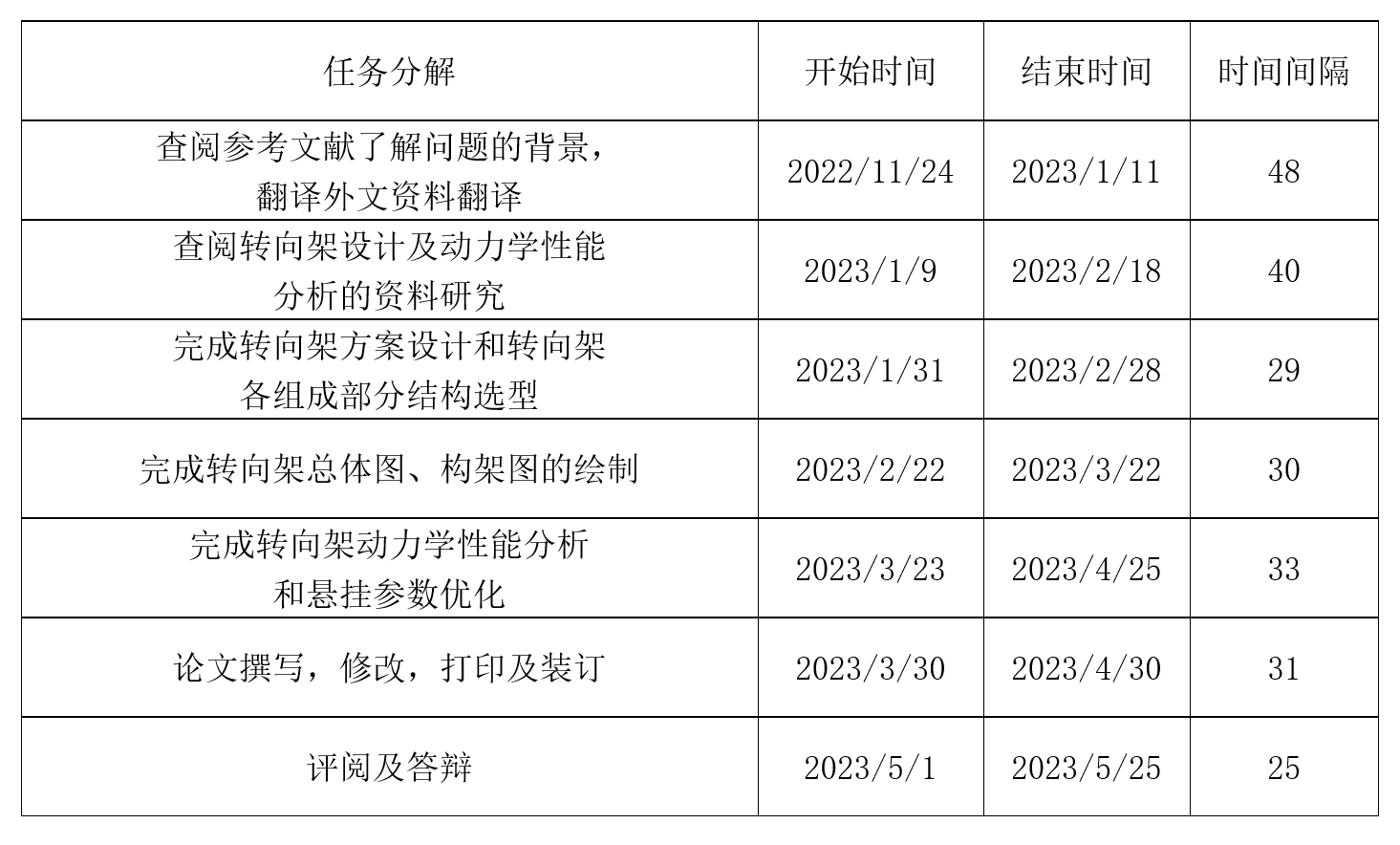 图 1 任务分解甘特图