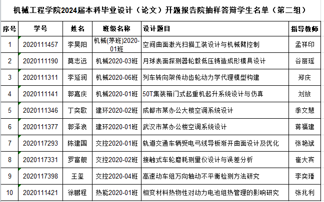 (2)为确保开题答辩工作顺利开展,请答辩学生加入QQ群(群名称:2024届毕设开题抽样答辩,群号码:420102395),并于1月10日下午17点前将答辩PPT发送至邮箱jxbkjw@swjtu.edu.cn,开题报告纸质版准备一份答辩现场交给评委老师传阅。开题报告纸质版指导教师签字后与班级一起交至新校区X2207办公室。