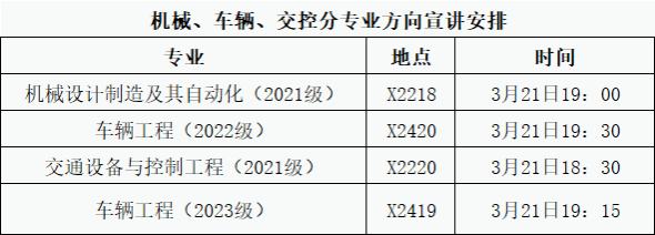 按照分专业方向工作安排,学院拟于近期开展机械、车辆、交控分专业方向工作,现将相关要求通知如下: