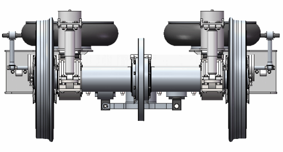 车轮材料采用整体碾钢材料,选用LMA踏面,由于采用轮盘制动,选择直辐板车轮。车轴采用EA4T材料,空心车轴便于减轻重量和探伤。