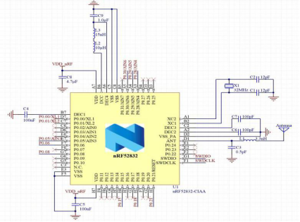 回答:蓝牙模块数据交互依赖天线,而使用NRF52832自带天线需要保证同一空间位置处没有其他有源元件以及覆铜,集成一个蓝牙模块可以节省板上空间。同时,集成蓝牙模块可以外加晶振等外设,丰富功能。