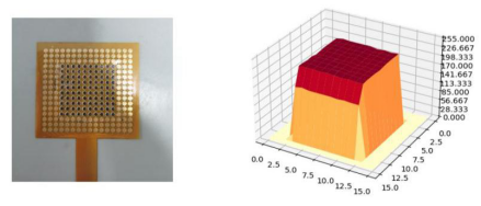(a)完整压感传感器前端           (b)受力极限测试结果可视化