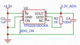 电源管理上,本文采用锂电池(标准电压3.7 V)和无线充电模块实现供电。为获取芯片供电电压3.3 V,采用线性降压芯片(TPS7A0233)将电池电压稳压至3.3 V(图8a)。为降低系统功耗,使用负载管理芯片(TPS22919DCKR)控制多路复用器的通断(图8b)。当蓝牙控制器被连接时,复用器连入电路,接入负载,实现数据测量。当蓝牙断开时,复用器断开,负载断开,进入休眠状态,此时电路中只有蓝牙芯片和稳压芯片工作,电流降低。经过测试,电路在工作时的电流有效值约为12 mA,休眠时电流有效值约为6 μA。