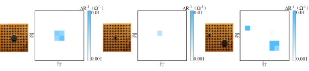 为测试压感阵列的空间精度,我们在传感器阵列上分别放置了5 mm直径和2 mm直径的圆型磁铁。如18所示,压感阵列能够准确分辨出磁铁的大小和位置,具有低至2 mm的空间精度。