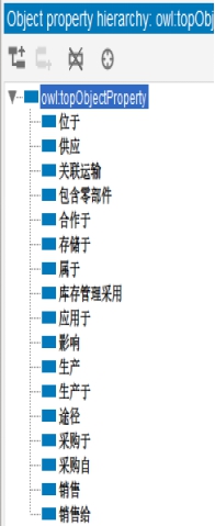 (3)基于Protégé的本体模型构建:使用本体建模工具Protégé创建本体模型,将定义好的类、属性和关系在工具中进行可视化构建,建立初步的汽车供应链库存管理本体框架。部分操作结果如下图所示。