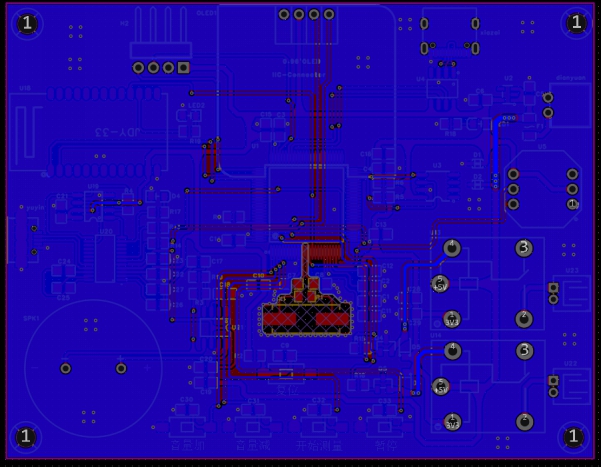 回答:目前这块PCB除了语音模块均能正常使用,代码调试工作正在不断推进。而语音模块遇到的问题是,我发现使用时喇叭有很大的噪音,原本的声音被覆盖,但是隐约可以听见原本正确的声音。因此我怀疑是PCB设计时对模拟信号线的处理不够到位,以及电源输入电压不够稳定。现在已经重新设计了一块语音模块PCB,在这块PCB上着重对模拟信号线进行了防干扰处理,且换用了更稳定的电源,目前还没有来得及对这块新的PCB进行焊接与测试,如果最后这块PCB能实现功能,那么在设计第二版血压计PCB时便可沿用此PCB的设计方法。由于经验不足,在设计硬件时其实出现了不少问题,首先在电池接口处,我采用的是XH2.54接口,但是我将其封装从立式变为卧式时,没有注意到它的引脚交换了,导致电源反接。好在在电路设计时有添加防反接二极管,没有损坏电子元件。为了解决这个问题,我将该接口接在了背面,现在已经可以正常使用。然后便是芯片虚焊的问题,由于STM32F407VE芯片引脚较多较密,焊接时容易出现短路与虚焊,但在使用万用表排查后这些问题得到了解决。
