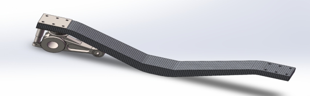在本设计中,转向架采用了两侧独立一体成型的碳纤维弓形梁(弓系)柔性体结构,参考日本川崎重工efwing转向架理念,结合400km/h高速列车运行环境的实际工况需求加以改进。